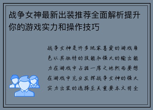 斩魂影战职业在游戏中的独特魅力和强大战斗力,使其成为玩家们热衷的职业之一。为了充分发挥斩魂影战的潜力,合理的加点与技能搭配是提升角色战斗力的关键所在。本文将从斩魂影战的职业特点入手,结合加点与技能搭配的要点,为玩家们提供一份详尽的攻略。我们将通过四个方面来进行全面解析,帮助玩家理解如何在不同的战斗场...